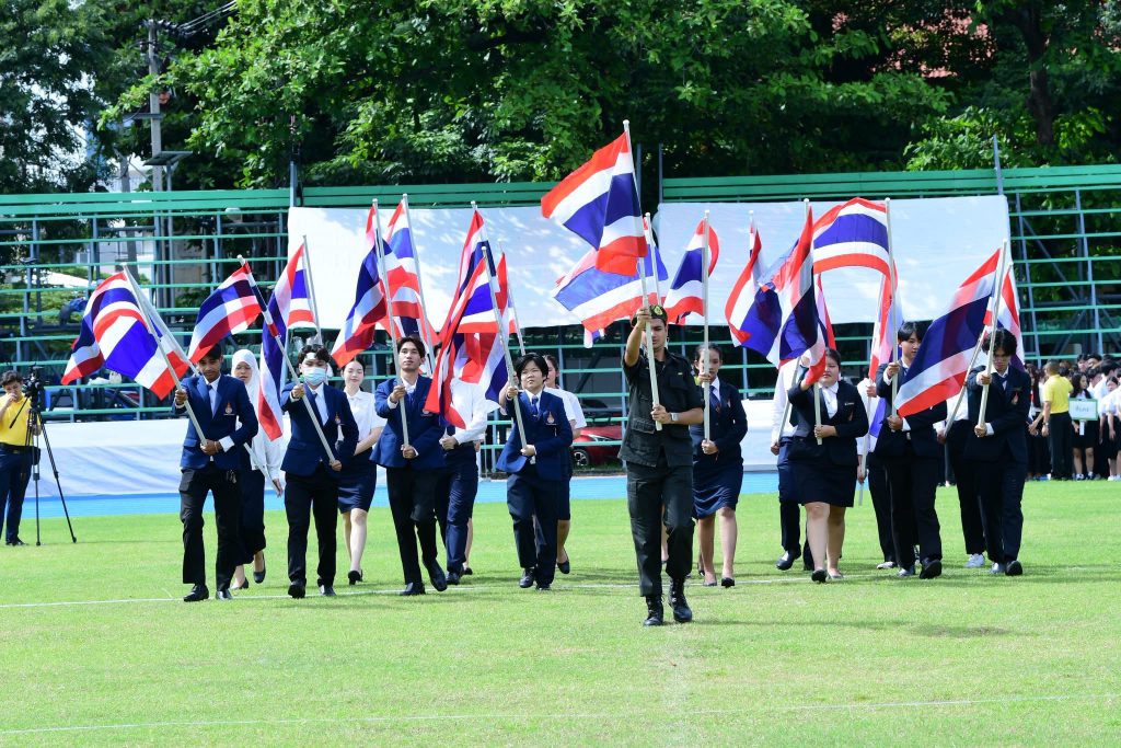 จากนั้น เวลา 10.00 น. ได้จัดกิจกรรมเชิงสัญลักษณ์ เดินขบวนพาเหรดแปรผืนธงชาติไทย เพื่อแสดงออกถึงความเป็นเอกราชของชาติไทย โดยมี ชาติ ศาสนา และพระมหากษัตริย์ เป็นเครื่องยึดเหนี่ยวของคนในชาติ เพื่อดำรงไว้ถึงความเป็นปึกแผ่นของประเทศไทย ในกิจกรรมนี้ ผศ.ชัยศักดิ์ คล้ายแดง รองอธิการบดี มทร.กรุงเทพ ได้เป็นผู้แทนมหาวิทยาลัยฯ กล่าวให้กำลังใจถึงทหารชายแดน ว่า “เราขอส่งกำลังใจจากใจกลางแผ่นดิน สู่พี่น้องทหารที่แนวชายแดนไทย – กัมพูชา และขอบคุณในความเสียสละ ขอให้ท่านทุกคนปลอดภัย มีขวัญกำลังใจที่เข้มแข็ง และโปรดรู้ว่าพวกเรายืนอยู่เคียงข้างท่านเสมอ” เสร็จแล้วนำบุคลากรและนักศึกษายืนสงบนิ่งระลึกถึงความเสียสละและสดุดีทหารกล้าที่สละชีพเพื่อชาติ พร้อมปกป้องอธิปไตยและประชาชน