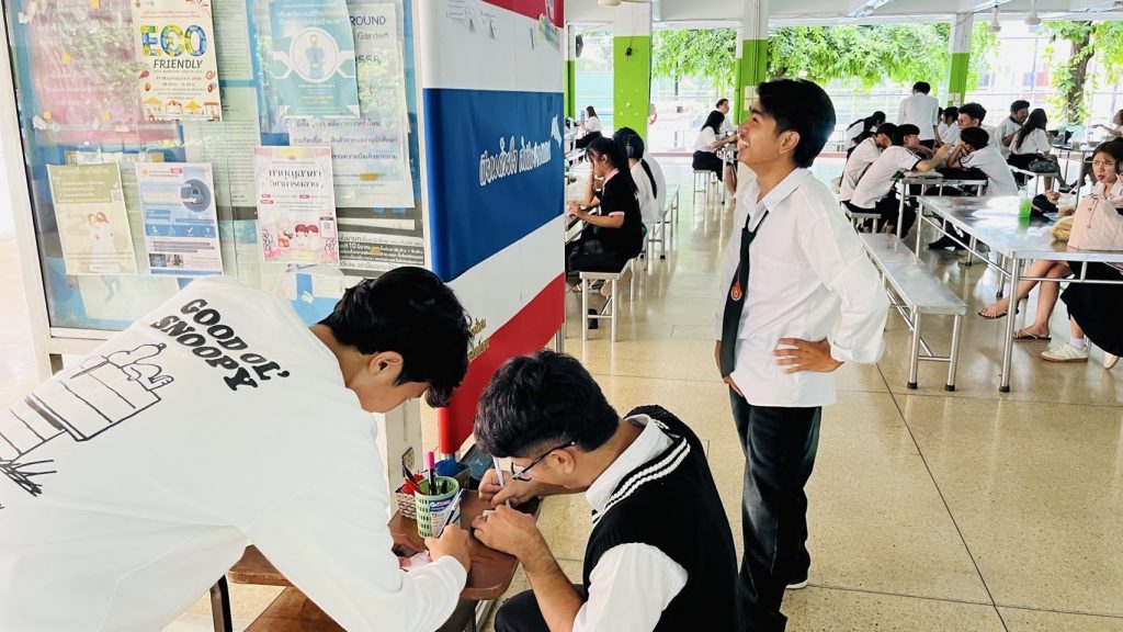 นอกจากนี้ มหาวิทยาลัยฯ ยังจัดพื้นที่ให้บุคลากรและนักศึกษาได้เขียนข้อความแสดงความห่วงใยและส่งกำลังใจถึงทหารและประชาชนในพื้นที่ชายแดน ผ่านกิจกรรม “เขียนความรู้สึกลงบน Post-it” แล้วนำไปติดบอร์ดธงชาติไทย เพื่อมหาวิทยาลัยฯ จะนำข้อความส่งต่อเป็นกำลังใจให้กับทหารผู้กล้าต่อไป