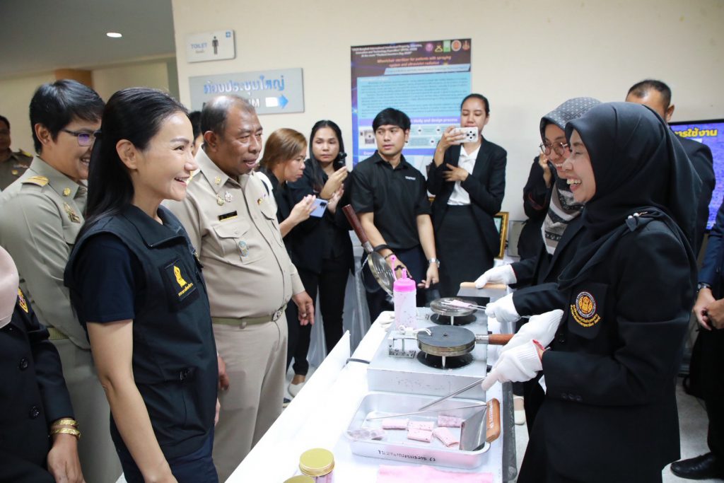 จากนั้น ร.อ.ธรรมนัส และ ศ.ดร.นฤมล พร้อมด้วยคณะ เดินทางต่อไปยังหอประชุมใหญ่คณะวิทยาการสื่อสาร มหาวิทยาลัยสงขลานครินทร์ วิทยาเขตปัตตานี ต.รูสะมิแล อ.เมือง จ.ปัตตานี เพื่อเยี่ยมชมนิทรรศการด้านการศึกษา และกิจกรรม Fix it Center ของสถานศึกษาในสังกัดกระทรวงศึกษาธิการ ได้แก่ ศูนย์ส่งเสริมการเรียนรู้อำเภอกะพ้อ อำเภอปานาเระ ศูนย์ฝึกอบรมวิชาชีพอำเภอยะรัง อำเภอมายอ และอำเภอแม่ลาน สาขาวิทยาลัยอาชีวศึกษาปัตตานี