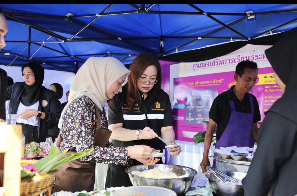 เมื่อวันที่ 9 พ.ย.2568 ดร.เกศทิพย์ ศุภวานิช อธิบดีกรมส่งเสริมการเรียนรู้(สกร.)เปิดเผยว่า จากการลงพื้นที่ร่วมกับคณะ ร้อยเอก ธรรมนัส พรหมเผ่า รองนายกรัฐมนตรีที่กำกับดูแลกระทรวงศึกษาธิการ(ศธ.)ศ.ดร.นฤมล ภิญโญสินวัฒน์ รัฐมนตรีว่าการกระทรวงศึกษาธิการ พร้อมผู้บริหารระดับสูงจาก 4 กระทรวง ได้แก่ กระทรวงเกษตรและสหกรณ์ กระทรวงศึกษาธิการ กระทรวงการพัฒนาสังคมและความมั่นคงของมนุษย์ และกระทรวงการท่องเที่ยวและกีฬา ที่จังหวัดนราธิวาส เพื่อตรวจราชการและติดตามภารกิจด้านการเกษตร การศึกษา การพัฒนาสังคม และการท่องเที่ยว ณ ลานอเนกประสงค์ (ลานคนเดิน) อำเภอสุไหงโก-ลก จังหวัดนราธิวาส โดย กรมส่งเสริมการเรียนรู้ ได้ร่วมจัดนิทรรศการ “การส่งเสริมการเรียนรู้จากภูมิปัญญาท้องถิ่น สู่การสร้างรายได้และคุณภาพชีวิตที่ยั่งยืน” นำเสนอผลงานเด่นจากพื้นที่จังหวัดนราธิวาส อาทิ สกร.ระดับอำเภอสุไหงโก-ลก นำเสนอการทำขนมไทยโบราณพื้นถิ่น “ปูตูฮาลือบอ”การแปรรูปแป้งสาคูต้น ชนิดผงและชนิดเม็ด ครองแครง ลอดช่องสิงคโปร์ ขนมสาคูเปียกมะพร้าวอ่อน ครองแครงกะทิสด ลอดช่องสิงคโปร์กะทิสดมะพร้าวอ่อน และการสาธิตการทำริบบิ้นถวายความไว้อาลัย สกร.ระดับอำเภอสุไหงปาดี นำเสนอการทำขนมไทยโบราณ “ขนมคนที” หรือที่บางท้องถิ่นเรียกว่า “ขนมตานี” ซึ่งเป็นขนมที่มีเอกลักษณ์โดดเด่นและมีคุณค่าทางภูมิปัญญา และการทำน้ำอัญชันโซดามะนาว และในโอกาสนี้ ศ.ดร.นฤมล ได้เยี่ยมชมและกล่าวชื่นชมการดำเนินงานของ สกร. ที่สามารถต่อยอดภูมิปัญญาท้องถิ่นให้เป็นเครื่องมือในการสร้างอาชีพและพัฒนาคุณภาพชีวิตประชาชนได้อย่างเป็นรูปธรรม สอดคล้องกับพระราชบัญญัติส่งเสริมการเรียนรู้ พ.ศ. 2566 ที่มุ่งเน้นให้ประชาชนทุกกลุ่มวัยได้เรียนรู้ตามบริบทของตนเองและพื้นที่อันมีความหลากหลายทางวัฒนธรรม
