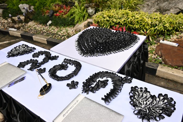 ห้องราชพัตราภรณ์ชลบทนิกรบวรหัตถศิลป์ จัดแสดงชุดผ้าไหมมัดหมี่ที่ได้แรงบันดาลใจจากฉลองพระองค์ของพระราชวงศ์ไทย แสดงกระบวนการผลิตผ้าไหมตั้งแต่ต้นจนเป็นผ้าไทยงดงาม