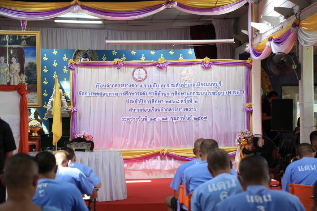 สำหรับการจัดสอบในครั้งนี้ สนามสอบเรือนจำกลางบางขวางมีคณะกรรมการสนามสอบที่รับผิดชอบหลัก ได้แก่ นายศราวุธ รักษ์ยศ ผู้อำนวยการส่วนพัฒนาผู้ต้องขัง ส่วนที่ 2 เรือนจำกลางบางขวาง และ นายปิติ พันธุ์ศักดิ์ นักวิชาการอบรมและฝึกวิชาชีพชำนาญการ พร้อมเจ้าหน้าที่จากเรือนจำกลางบางขวางทำหน้าที่กรรมการคุมสอบ รวมจำนวน 4 ห้องสอบ โดยสนามสอบดังกล่าวจัดสอบในรูปแบบกระดาษ (Paper Pencil) โดยในวันนี้จัดสอบให้แก่นักศึกษาระดับมัธยมศึกษาตอนปลาย ทั้งนี้ N-NET เป็นการทดสอบเพื่อวัดผลสัมฤทธิ์ทางการเรียนตามหลักสูตรการศึกษานอกระบบ และเป็นเงื่อนไขสำคัญในการสำเร็จการศึกษา โดยการสอบครอบคลุม 5 กลุ่มสาระการเรียนรู้ ได้แก่ สาระทักษะการเรียนรู้ สาระความรู้พื้นฐาน สาระการประกอบอาชีพ สาระทักษะการดำเนินชีวิต และสาระการพัฒนาสังคม ใช้ระยะเวลาในการสอบ 3 ชั่วโมง จำนวน 100 ข้อ 100 คะแนน เพื่อประเมินความรู้ ความเข้าใจ และทักษะของผู้เรียนอย่างรอบด้าน ซึ่งผลการสอบจะถูกนำไปใช้ประกอบการจบหลักสูตร และเป็นพื้นฐานสำคัญในการต่อยอดโอกาสทางการศึกษาและการประกอบอาชีพในอนาคต อย่างไรก็ตาม จากการตรวจเยี่ยมพบว่า ในภาคเรียนนี้ (2/2568) เรือนจำกลางบางขวางมีนักศึกษาที่คาดว่าจะสำเร็จการศึกษา รวมจำนวน 224 คน ประกอบด้วย ระดับประถมศึกษา 37 คน ระดับมัธยมศึกษาตอนต้น 65 คน และระดับมัธยมศึกษาตอนปลาย 122 คน ซึ่งสะท้อนถึงความตั้งใจของผู้เรียนในการใช้โอกาสทางการศึกษาเพื่อพัฒนาตนเองอย่างจริงจัง