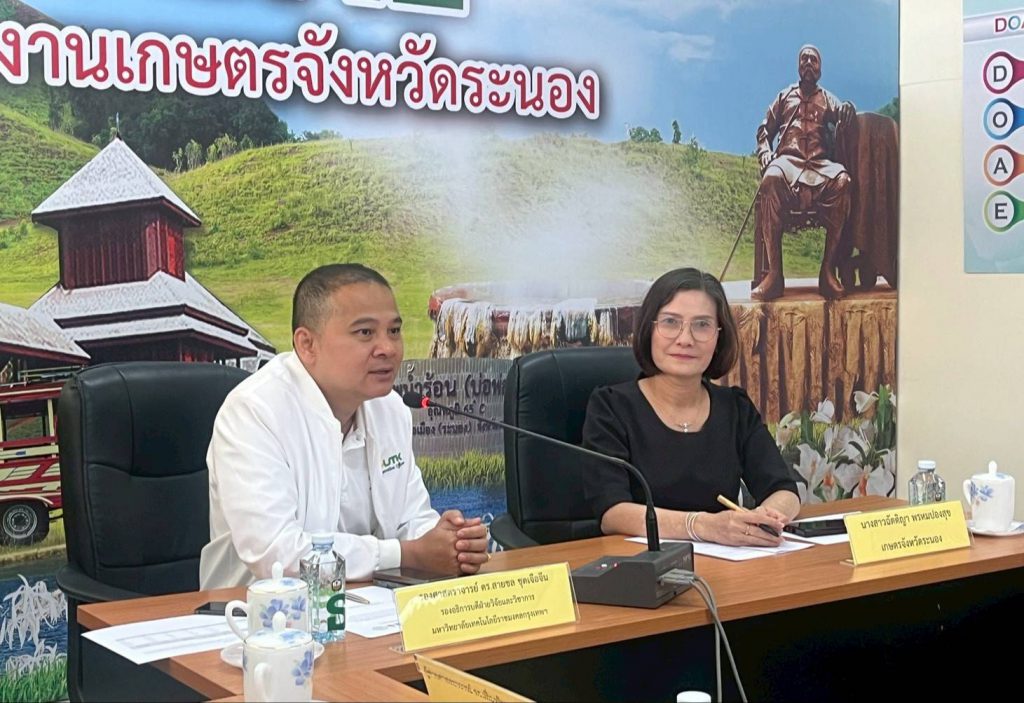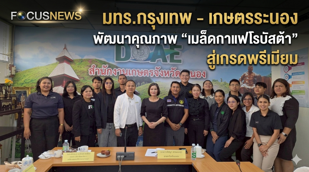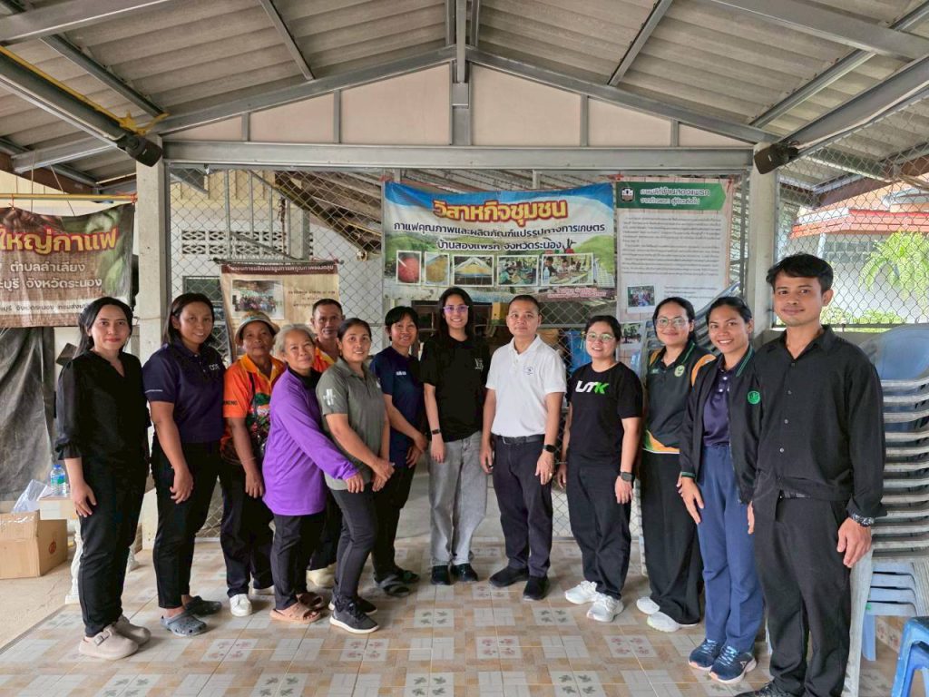 เมื่อวันที่ 22 เมษายน 2569 รศ.ดร.สายชล ชุดเจือจีน รองอธิการบดีฝ่ายวิจัยและวิชาการ มหาวิทยาลัยเทคโนโลยีราชมงคล(มทร.)กรุงเทพ และคณะอาจารย์นักวิจัย เข้าพบปะหารือกับ นางสาวฉัตติญา พรหมปองสุข เกษตรจังหวัดระนอง และหัวหน้ากลุ่มและเจ้าหน้าที่สำนักงานเกษตรจังหวัดระนอง ณ สำนักงานเกษตรจังหวัดระนอง เพื่อวางแนวทางขับเคลื่อนงานวิจัยการผลิตกาแฟโรบัสต้าคุณภาพพิเศษในพื้นที่จังหวัดระนอง และลงพื้นที่ ณ แปลงใหญ่กาแฟ หมู่ที่ 7 ตำบลลำเลียง อำเภอกระบุรี
