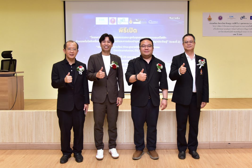เมื่อเร็ว ๆ นี้ คณะวิศวกรรมศาสตร์ มหาวิทยาลัยเทคโนโลยีราชมงคล(มทร.)ธัญบุรี จัดโครงการพัฒนากำลังคนสมรรถนะสูงในอุตสาหกรรมยานยนต์ไฟฟ้า ด้านเทคโนโลยีเครื่องอัดประจุยานยนต์และการซ่อมบำรุงด้วยระบบปัญญาประดิษฐ์ (ระยะที่ 2) โดยมี ดร.ณิรวัฒน์ ธรรมจักร์ ผู้อำนวยการหน่วยบริหารและจัดการทุนด้านเทคโนโลยีและนวัตกรรมเพื่ออุตสาหกรรมแห่งอนาคต (บพค.) เป็นประธานเปิดโครงการ พร้อมบรรยายพิเศษ “กลไกการจัดสรรงบประมาณส่งเสริมการลงทุนและการเสริมสร้างความเข้มแข็งของบุคลากรในระบบนิเวศ ววน ระหว่างรัฐ เอกชน และมหาวิทยาลัย” ซึ่งมี รศ.ดร.ศิริชัย ต่อสกุล คณบดีคณะวิศวกรรมศาสตร์ มทร.ธัญบุรี กล่าวต้อนรับ และ ผศ.ดร.เทอดเกียรติ ลิมปิทีปราการ หัวหน้าโครงการ กล่าวรายงาน ณ ห้องกาสะลอง2 คณะวิศวกรรมศาสตร์ มทร.ธัญบุรี จ.ปทุมธานี