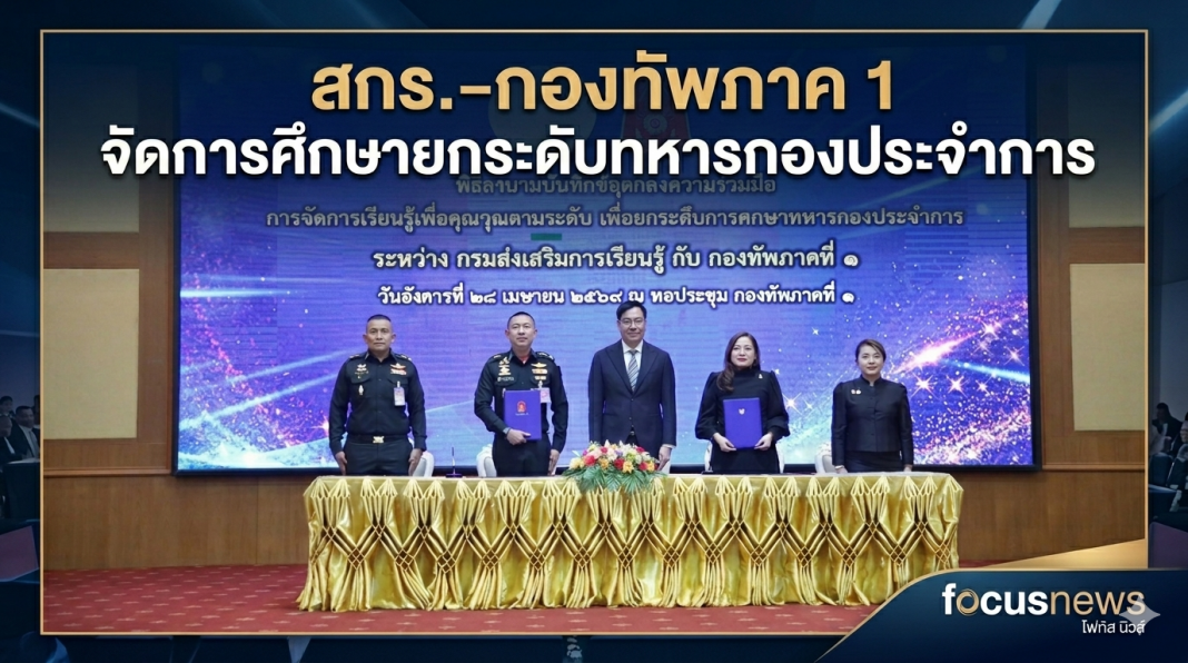 วันที่ 28 เมษายน 2569 กรมส่งเสริมการเรียนรู้ (สกร.) ร่วมกับกองทัพภาคที่ 1 จัดพิธีลงนามบันทึกข้อตกลงความร่วมมือการจัดการเรียนรู้เพื่อคุณวุฒิตามระดับ เพื่อยกระดับการศึกษาทหารกองประจำการ โดย พลโท วรยส เหลืองสุวรรณ แม่ทัพภาคที่ 1 และ ดร.เกศทิพย์ ศุภวานิช อธิบดีกรมส่งเสริมการเรียนรู้ ร่วมลงนาม โดยมี นายอัครนันท์ กัณณ์กิตตินันท์ รัฐมนตรีช่วยว่าการกระทรวงศึกษาธิการ เป็นประธาน ดร.รุ่งอรุณ ไสยโสภณ รองอธิบดีกรมส่งเสริมการเรียนรู้ และผู้เกี่ยวข้องเข้าร่วมเป็นสักขีพยาน ณ หอประชุมกองทัพภาคที่ 1 ถนนราชดำเนินนอก กรุงเทพมหานคร